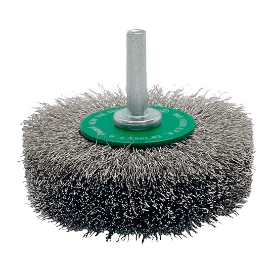 Disponíveis nos diâmetros de 20 a 80 mm, com haste de 6,35 mm (¼”), estes modelos podem ser fornecidos em arames de aço carbono, aço latonado, aço inox ou latão. A escolha do tipo de arame correto é fundamental para o bom desempenho da escova, e sua melhor eficiência durante o processo.