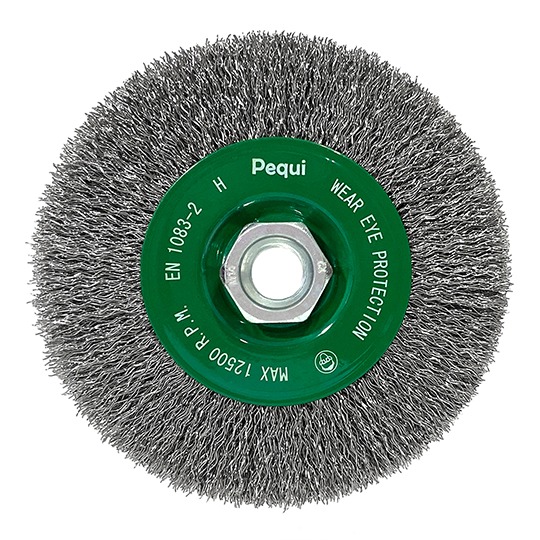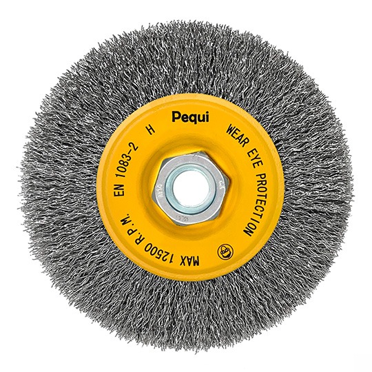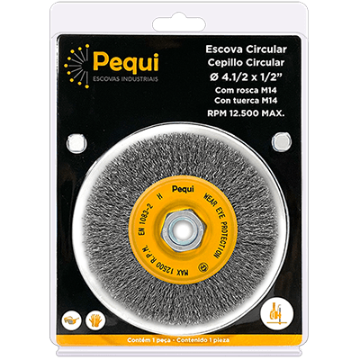 As circulares onduladas com porca são indicadas nas aplicações de remoção de carepas, respingos de cordão de solda, rebarbação e limpeza de nível médio. Ideais para montagem em esmerilhadeiras angulares, podem ser fornecidas com rosca M14, rosca 5/8” ou ainda em multi-rosca.