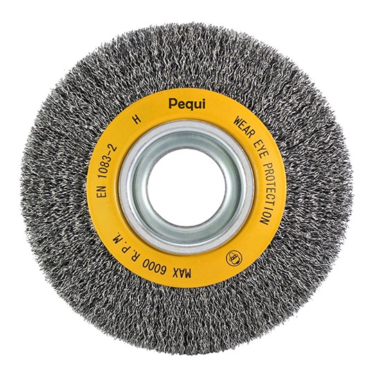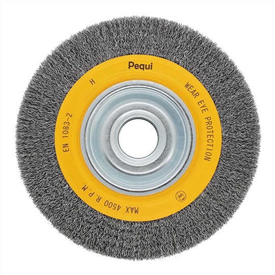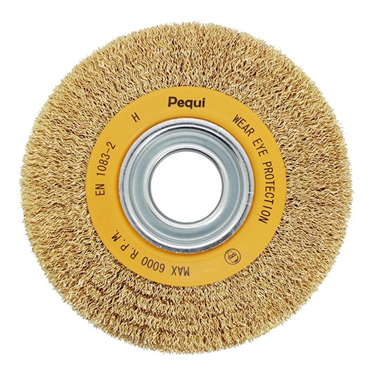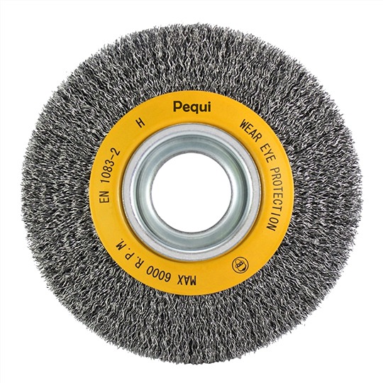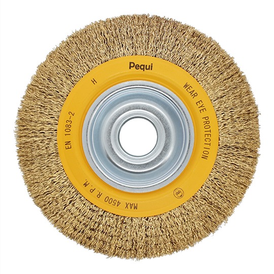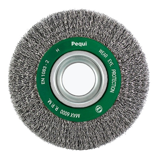 Disponíveis em diâmetros de 75 a 300 mm e larguras de 13 a 50 mm, as circulares onduladas podem ser fabricadas em diversos tipos de arames, como aço carbono, aço latonado, aço inox e latão, e nas mais variadas bitolas, combinando assim flexibilidade ou agressividade de acordo com a aplicação pretendida. Também podem ser fabricadas em filamentos abrasivos, crina e monofilamentos sintéticos.