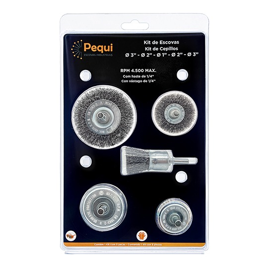 Atendendo aos padrões de fabricação da Norma Europeia EN-1083, é de grande importância seguir corretamente a indicação de velocidade máxima gravada nas escovas, que além de garantir uma operação segura, também serve de orientação para a montagem da escova em um equipamento compatível à sua dimensão.