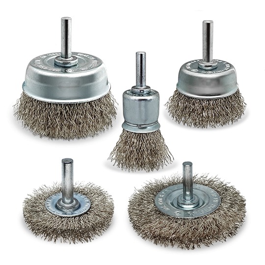 Com dimensões e modelos padronizados, as escovas da linha hobby possuem haste de 6,35 mm (¼”), que permite a montagem em furadeiras com rotação máxima de 4.500 RPM. Fabricadas em arames ondulados de aço carbono ou aço latonado, estão disponíveis nos seguintes modelos: